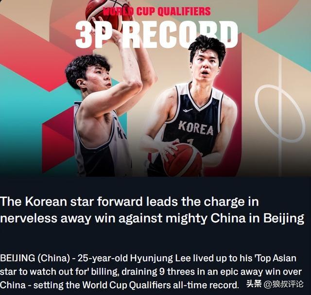 李贤重vs中国单场飙9记三分刷新世预赛纪录 赛前采访“杀人诛心”