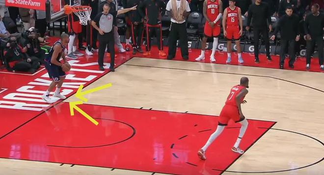 打到最后,火箭领先3分,快船还有最后8.7秒的最后一攻机会,结果老将巴图姆发底线球的时候踩线违例了。