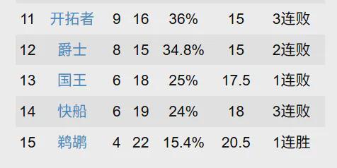 昨天输给火箭之后,快船的战绩变成了6胜19负,排在西部倒数第2,联盟倒数第3。