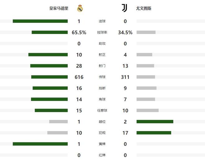 不满足1球优势的皇马,接下来的时间继续围攻尤文,第71分钟姆巴佩和迪亚斯连续完成两脚打门,都被迪格雷戈里奥化解,1分钟之后,迪亚斯再次攻门,又被加蒂在门线上完成解围,余下的时间,两支球队都有改写比分的绝佳机会,可惜都没有把握住,最终银河战舰如愿以偿在主场以零封的方式获得胜利。